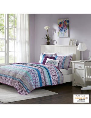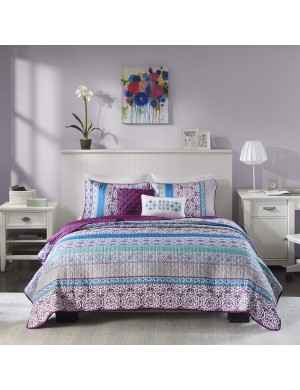 Rooted in bohemian chic and a globetrotting aesthetic, this bedding set seamlessly blends rich purple hues with a sophisticated striped pattern. Inspired by Moroccan textiles and Indian woodblock prints, the playful blend of geometric patterns and vibrant colors creates a free-spirited, eclectic vibe. Designed to transform your bed into a canvas for cultural expression, it's ideal for those who appreciate bold, layered decor.