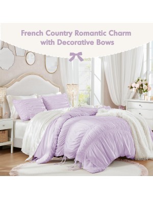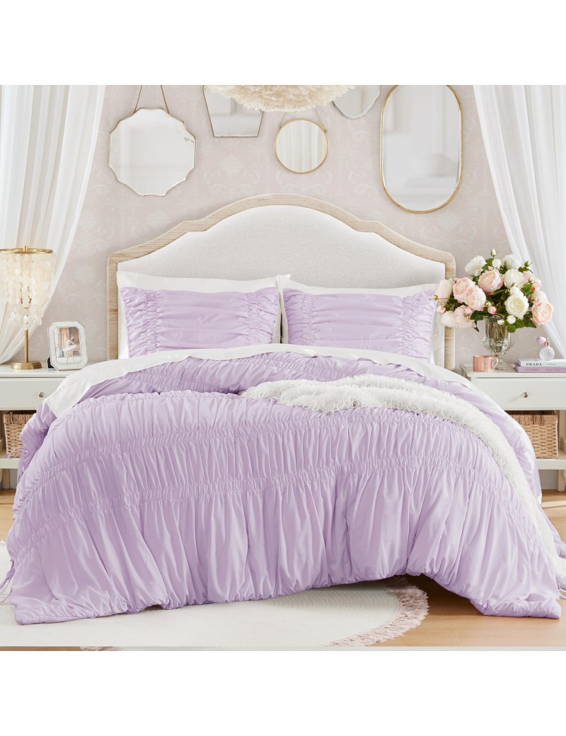 This bedding set exudes vintage chic and French country charm. The soft lavender color combined with the ruffle design creates a dreamy and romantic aesthetic. It complements a variety of bedroom décor styles, from vintage to modern and girly, adding a touch of sweet elegance. Whether your room features ornate mirrors, floral prints, or minimalist furniture, this bedding set will blend seamlessly.