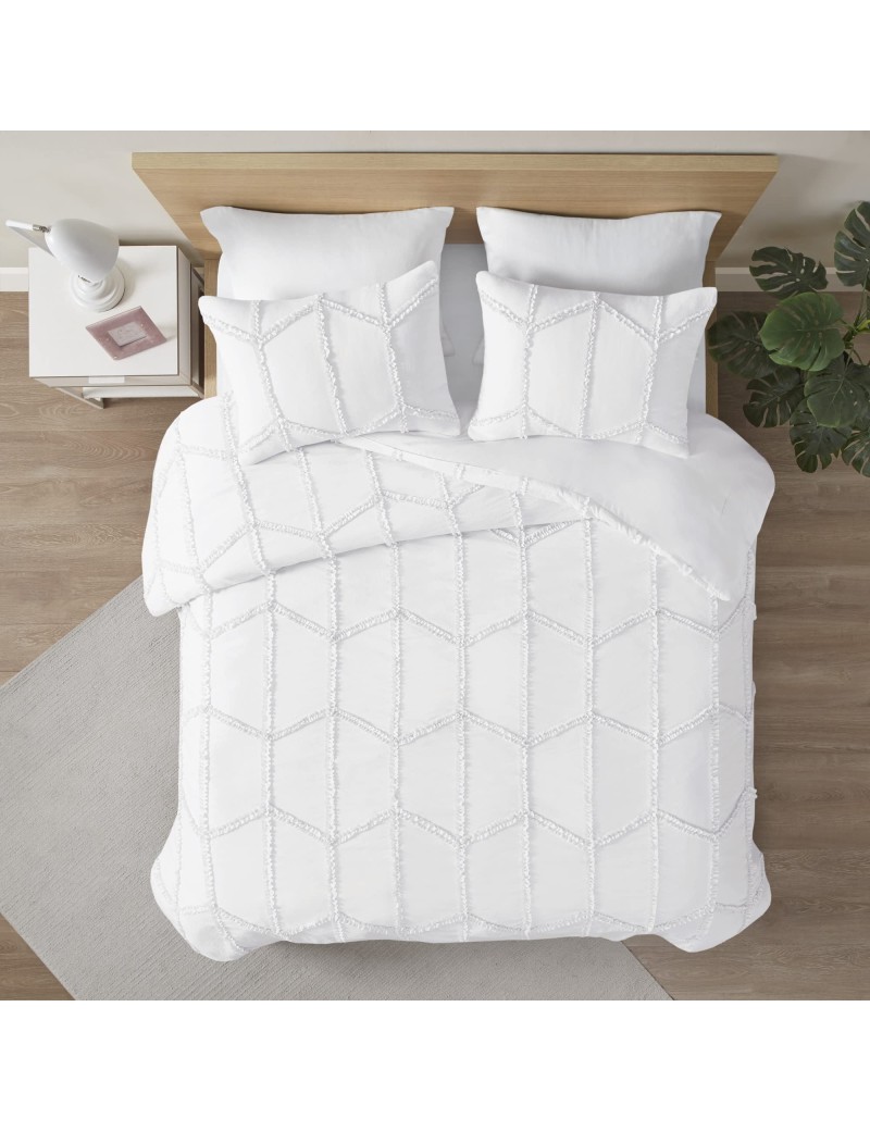 Inspired by modern architectural minimalism, this bedding set features a raised geometric texture against a crisp white background. It captures the clean lines and understated elegance of modern design, transforming your bed into a sophisticated, minimalist focal point. It's perfect for creating a tranquil, uncluttered sleep space.