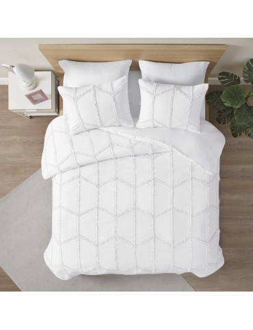 This textured, geometric white bedding set blends modern design with everyday comfort, transforming your bedroom into a refined and elegant haven. With its durable fabric, exquisite craftsmanship, and versatile style, it's the perfect choice for those seeking a tranquil, modern sleep space.
