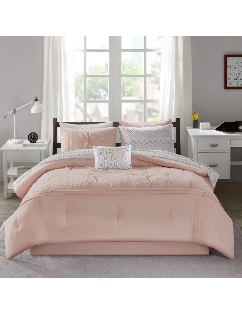 This blush pink, multi-layered bedding set is more than just a decorative touch; it's the perfect finishing touch for everyday comfort and style. Easily transform your bedroom into a relaxing and elegant retreat.