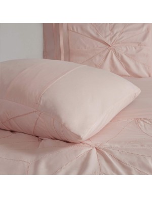 Imagine a gentle sunrise—this bedding set captures that warmth in a soft blush pink. The layered design, quilted details, and mixed-pattern pillowcases create a relaxed, sophisticated atmosphere. It's the perfect way to create a comfortable, stylish retreat, cuddling from dawn to dusk.