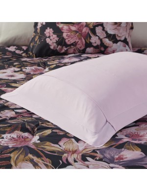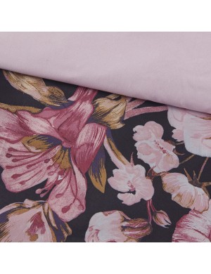 This bedding set exudes a vintage romance, featuring a rich pink floral pattern against a moody black backdrop. Reminiscent of a secret garden blossoming at dusk, dotted with starlight, it adds a touch of dynamic elegance to your sleep space.